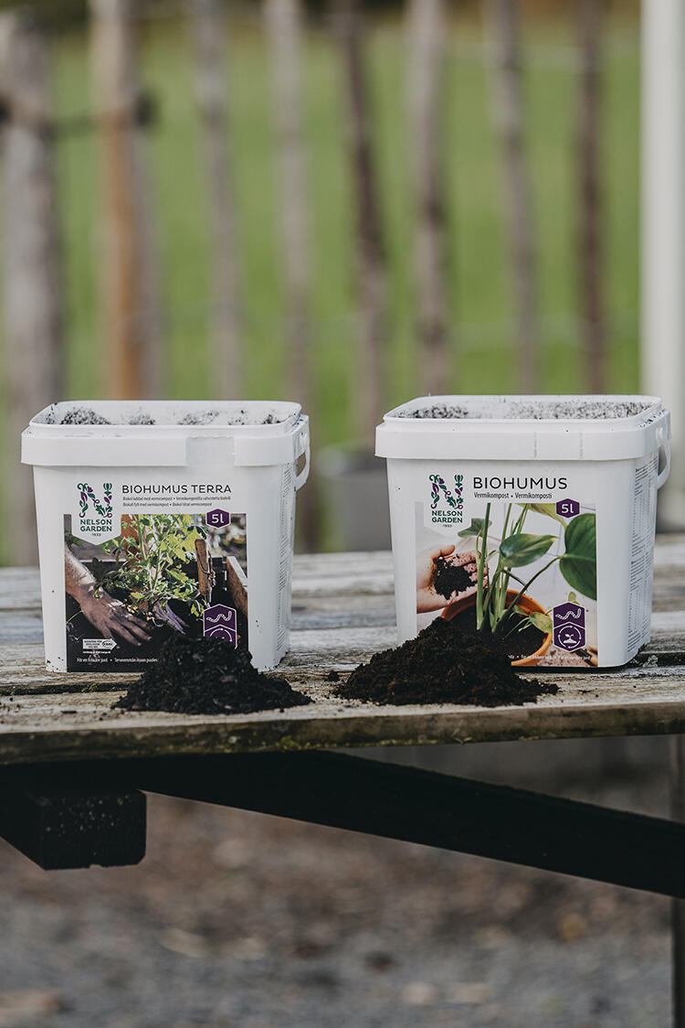 BIOHUMUS är rik på goda jordbakterier och svampar, humus- och fulvosyror, samt växthormoner. Biohumus stärker även växtens motståndskraft mot sjukdomar.