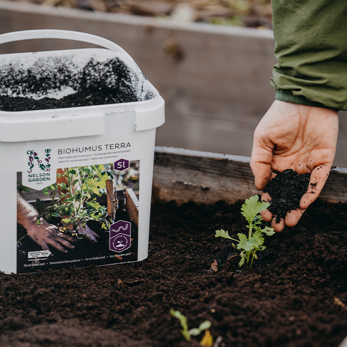 För att jordförbättra i rabatter, trädgårdsland, pallkragar, stora krukor och kärl
