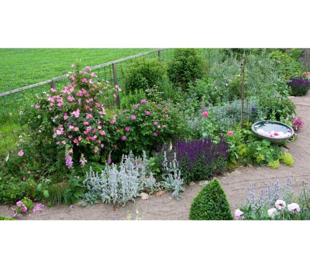På våren och tidiga försommaren står tovsippa, gullviva, löjtnantshjärta och liljekonvalj i blom. De följs av fänrikshjärta i maj och under försommaren blommar dagliljor, iris, kantnepeta och pioner. Så småningom fyller lavendel, stjärnflocka, malva och rosenstav på i blomsterprakten. Ju längre sommaren fortgår desto mer högresta blir perennerna och riddarsporrar, stockrosor och stormhatt har hunnit sträcka på sig ordentligt. Framåt hösten blommar aster, höstflox och kärleksört. De sista mormorsblommorna ger sig inte förrän frosten tar dem.