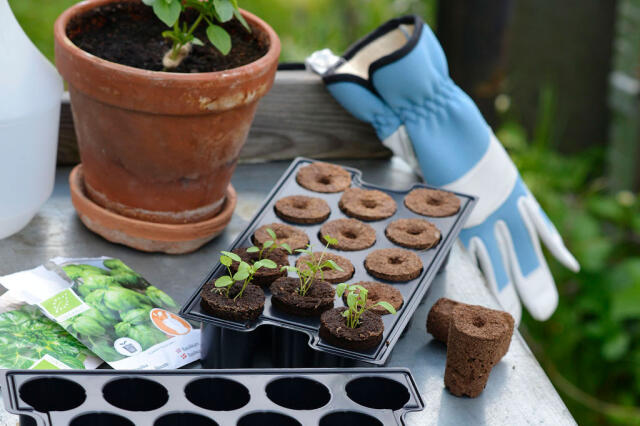 Ett lite mindre pluggbrätte kan enkelt bäras med ut i trädgården när du ska fylla på mellan raderna.