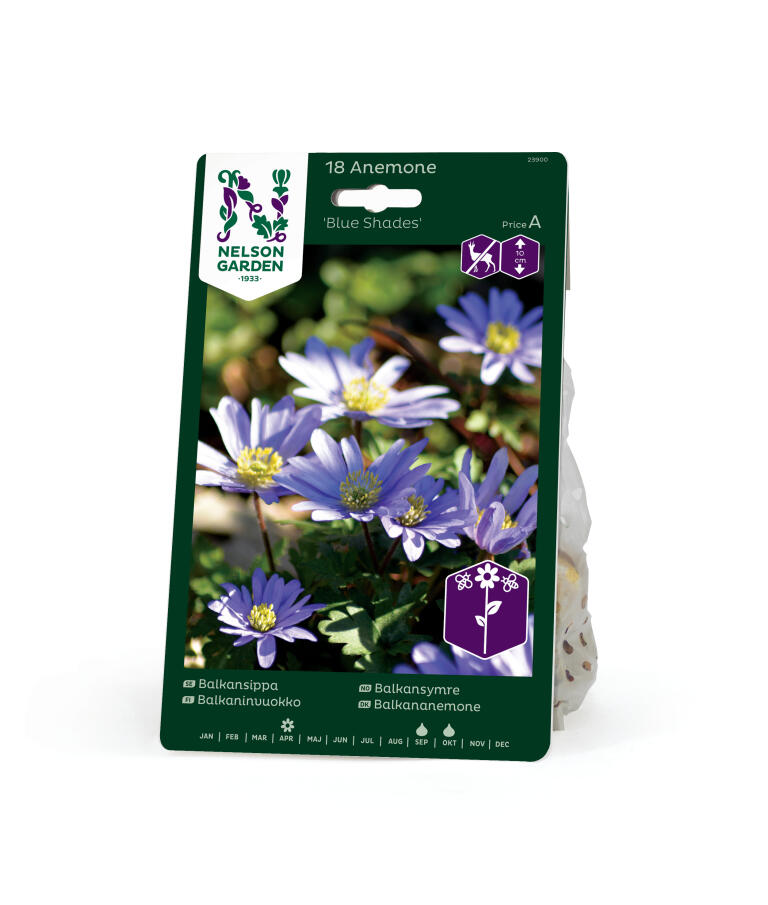 Sorten 'Blue Shades' har en vackert djupt blå färg. Balkansippa är en riktig sötnos som påminner i utseende om vår inhemska vitsippa. Anses vara mindre smaklig för rådjur, hare, kanin och sork.