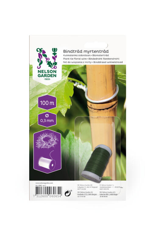 Grön myrtentråd till exempelvis kransbindning. Diameter 0,3 mm, längd 100 m.