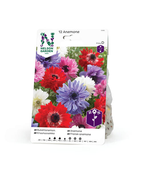 Halvfyllda anemoner i blandade färger, läckra tillsammans med andra sommarblommor i rabatten - och till snitt! Passar utmärkt i rabatten men även i krukor.