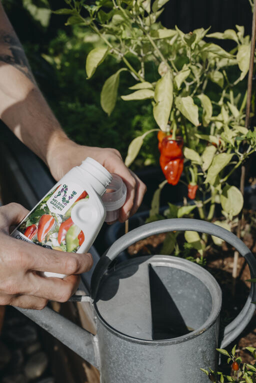 Flytande mineralisk näring för chiliplantor i lätthanterlig förpackning. Främjar fruktsättning och rotbildning. Innehåller mikronäringsämnen. Blandas i vatten. NPK 4-3-5