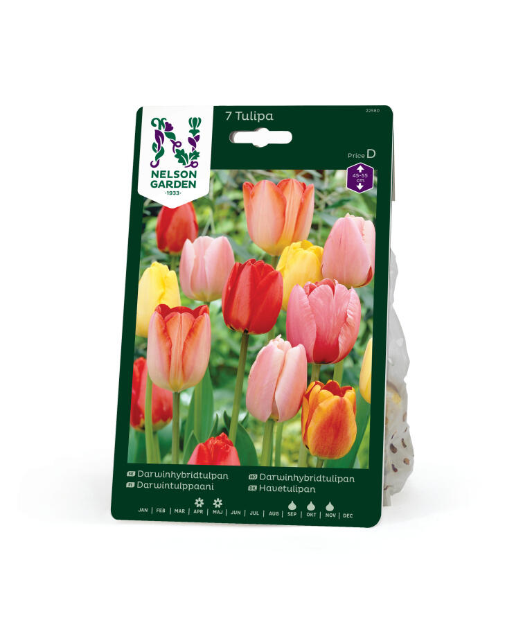 En härlig blandning av darwinhybridtulpaner i flera färger. Darwinhybridtulpanen är en medeltidig tulpan med stora enkla blommor på lång och stadig stjälk. Darwinhybridtulpanen kan bli långlivad i trädgården. Mycket bra som snittblommor.