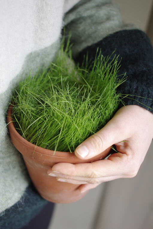 Dekorationsgräs av timotej. Kan sås inomhus året runt och passar utmärkt till dekorativa arrangemang.
