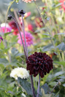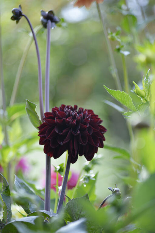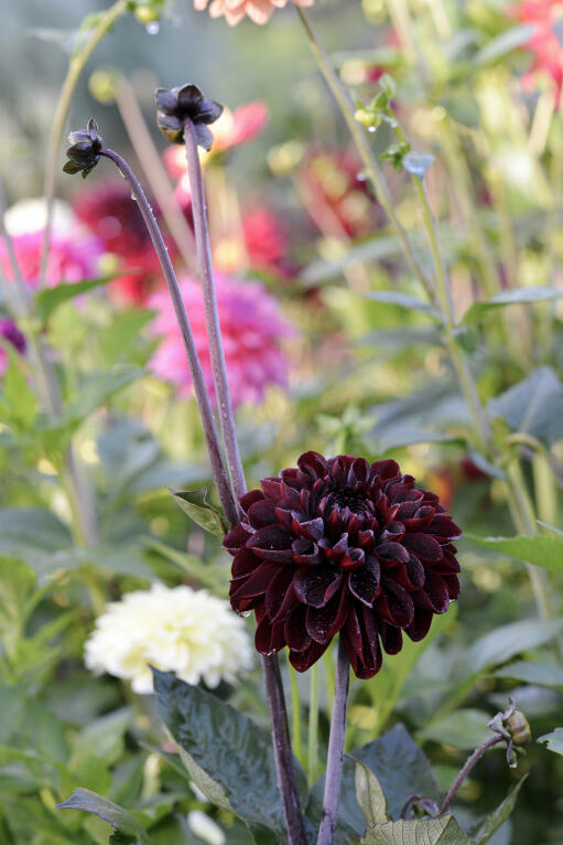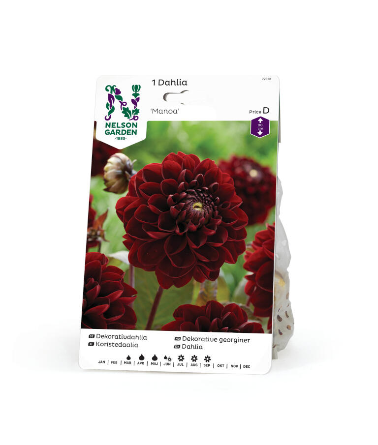 Praktfull dekorativdahlia i en djupt mörkröd färg. Perfekt som accent i en rabatt eller bukett med rostiga och aprikosa toner. På kraftiga mörka stjälkar står den fint i rabatten och blir en utmärkt snittblomma