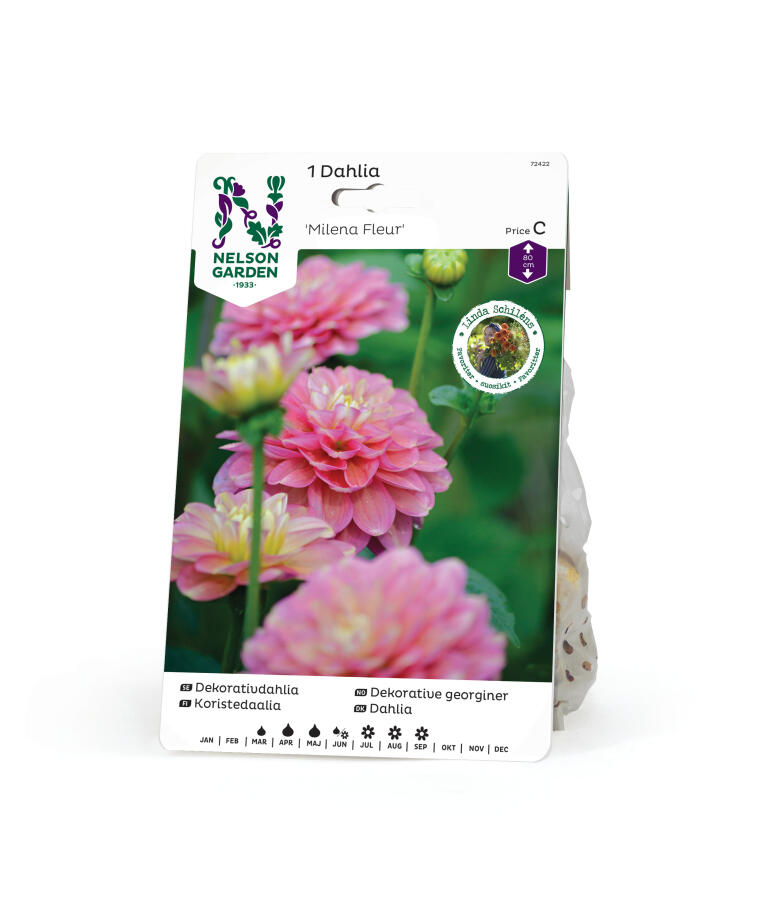 En dekorativdahlia som skimrar som om den vore beströdd med glitter. I romantiska nyanser från laxrosa till lavendelblått passar den perfekt till vita blommor, mörkbladiga växter eller prydnadsgräs. Blommar rikligt och länge på stadiga stjälkar.
