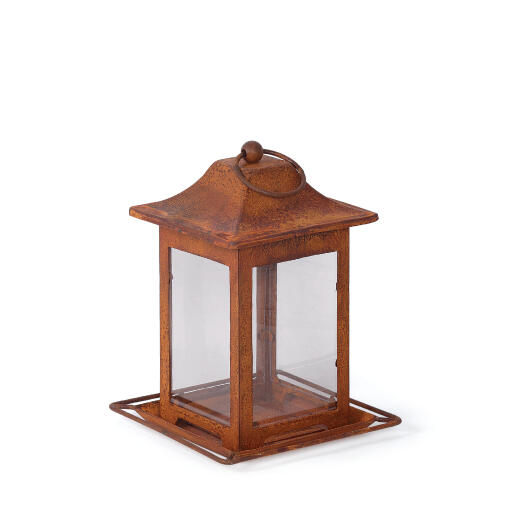 Smakfull fågelmatare för frö, en inredningsdetalj för trädgården. Ring att hänga i som skruvas av när mataren ska fyllas. Sittplatser runtom. Av plåt och med väggar av tålig plexi.