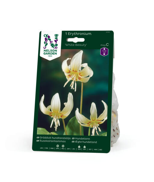 En vacker vit sort med bakåtböjda kronblad, dekorativt ådrade blad och rödaktiga blomstänglar. Belönad som särskilt odlingsvärd sort av Royal Horticultural Society. Hundtandsliljan har fått sitt namn efter formen på löken.