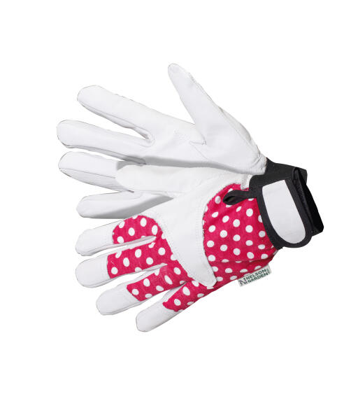 Smidig handske i följsam stretchig bomullssatin och tunt, slitstarkt narvskinn. Kardborrband i mudden. För de flesta typer av trädgårdsarbete.