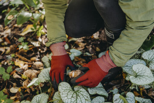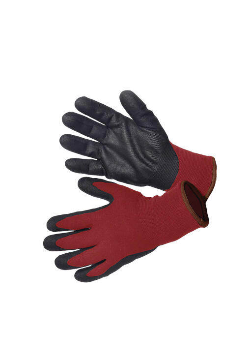 Smidig, varmfodrad handske av stickad polyester med foder av akryl samt svart nitrildoppning. En varm, följsam och skön handske för trädgårdsarbete under kalla dagar.