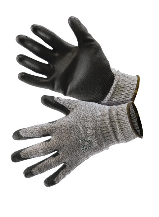 Stickad PU-doppad skärskyddshandske. Perfekt vid trädgårdsarbete med risk för skärskador. Bekväm och med bra fingertoppskänsla. Av nylon, glasfiber och HPPE.X