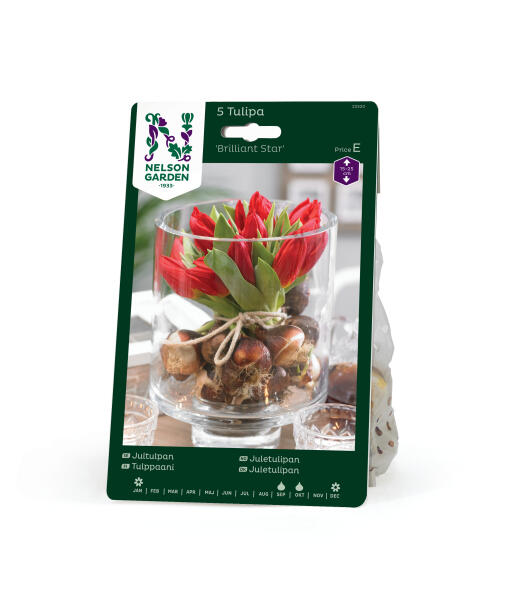 'Brilliant Star' är en sort registrerad i Nederländerna år 1906. Blommorna är lysande scharlakansröda. Sorten tillhör Tidiga Enkelblommiga Gruppen. Dessa lökar är lämpliga för inomhusdrivning till jul.