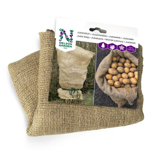 Jutesäck för övertäckning av växter. Skyddar mot såväl frost och snö som stark sol, men även mot uttorkning om våren. Kan även användas som krukskydd, vedsäck, förvaring av grönsaker och tomtesäck till jul. 70 x 110 cm