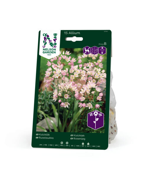 En allium vars ljusrosa, romantiska blomställningar skapar ljuva blomsterbuketter. Anses vara mindre smaklig för rådjur, hare, kanin och sork.