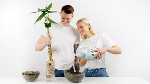 3. För minskad avdunstning: placera ett lager lecakulor på jordytan runt stjälk eller stam.