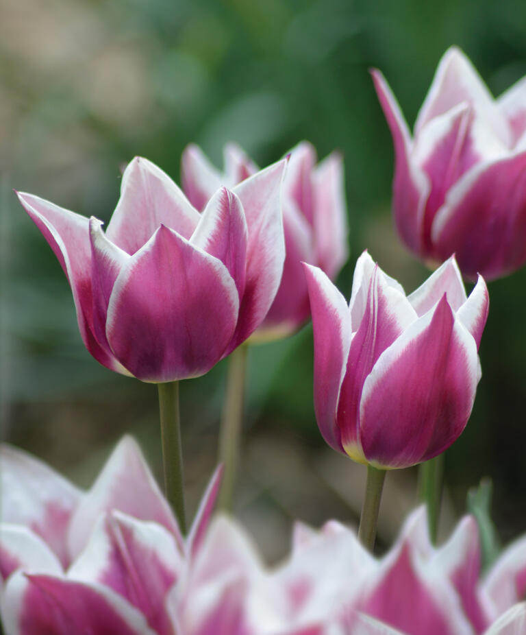 'Claudia' är en elegant och ståtlig liljeblommande tulpan på hög stjälk. Med sina vitkantade blomblad mot rödlila botten sticker den verkligen ut i rabatten. Utmärkt som snittblomma.