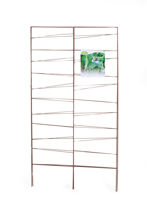 Rostfärgad spaljé i tre sektioner, för pallkrage och friland. Kan även användas som en växtbeklädd rumsavdelare. Vinkla för ökad stabilitet. Av pulverlackerat stål. Mått: 38+75+38 cm, höjd 140 cm.