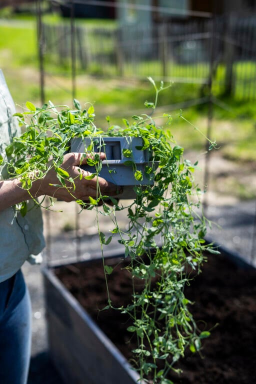 1.) Fyll pluggboxen med såjord och följ instruktionerna på fröpåsen. 2.) På med locket och håll sådden fuktig. Låt pluggboxen stå under belysning. 3.) Låt tomatplantan växa i pluggboxen tills du ser att det börjar växa fram ytterligare ett bladpar (karaktärsbladen) ovanför de första hjärtformade bladen. Det är nu det är dags att skola om (plantera om) tomaterna i en kruka fylld med lite mer näringsrik planteringsjord!