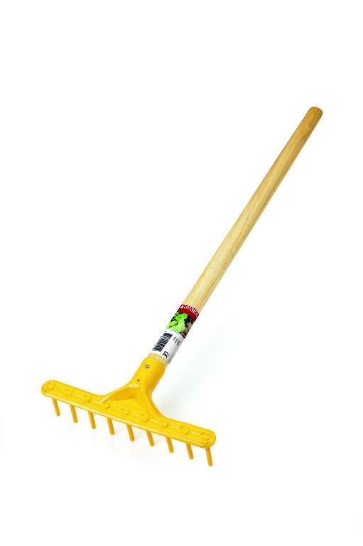 Liten kratta med lackat skaft. Ej lämplig för barn under 3 år. CE-märkt. Längd 67 cm.