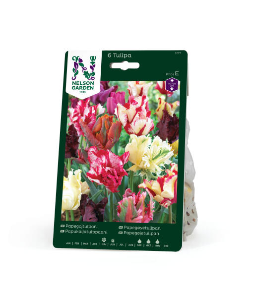 En härlig blandning av olika papegojtulpaner. Sorterna är senblommande och i många läckra färger. Gruppens främsta kännetecken är de stora blommorna med de exotiskt fjäderlika blombladen. Mycket bra som snittblommor.