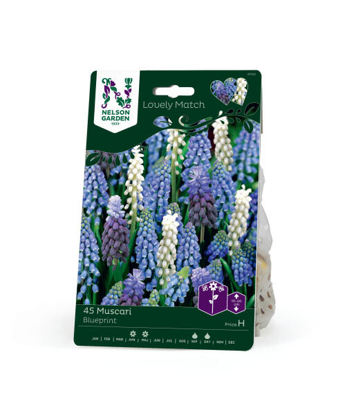 Lättodlade, rikblommande och alldeles, alldeles underbara! Med en färgskala som sträcker sig från rent vitt, över blått och mot mörkt violett, ger denna blandning av pärlhyacinter vårrabatten ytterligare en dimension.