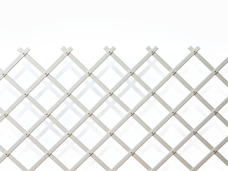 Spaljé av hållbar plast. Spik och distanser medföljer.