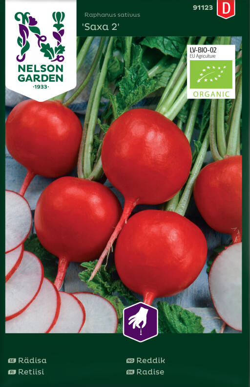 Ekologiskt frö. Smakfull rädisa som ger runda, helt röda rädisor. Skörda de späda rädisorna efter hand och ät dem färska. För att få jämn tillgång av krispiga rädisor bör sådd ske med några veckors mellanrum. Täck gärna med fiberduk.
