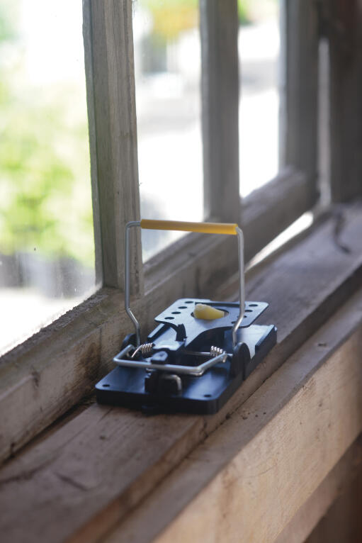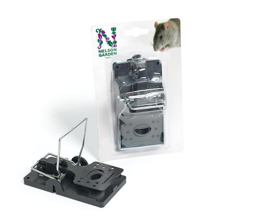 Råttfälla av plast och metall. Enkel att gillra och tömma. Enhandsgrepp.