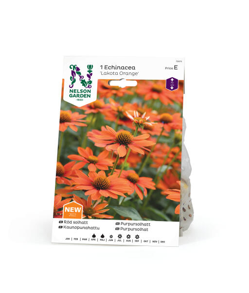 Echinacea eller röd solhatt, i en mustig orange ton. Blommar rikligt lite senare på säsongen, älskas av bin och fjärilar. Fin i såväl kruka som i rabatt och kan även plockas in som snitt.