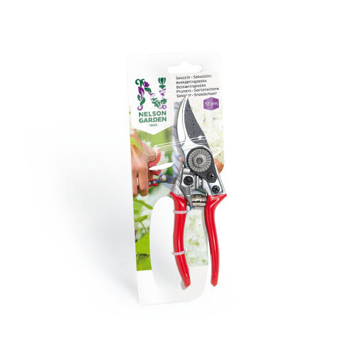 Behändig sekatör för t.ex. krukväxter och buskar. Utmärkt modell även för lite mindre händer. Skär av teflonbelagt stål. Kapacitet 15 mm.