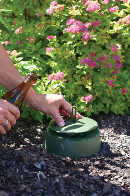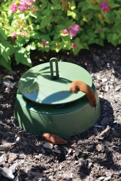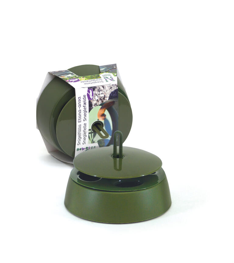 Giftfri och diskret snigelfälla. Fylls med t.ex. öl som lockar sniglarna till fällan där de drunknar. Av ABS-plast och polypropen. Behållaren kan maskindiskas. 18 x 18 x 13,5 cm.