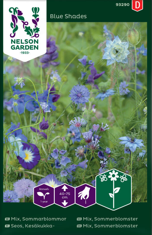 Klassiska sommarblommor i blå och violetta toner. Passar i såväl rabatt som bukett. Innehåller lättodlade sorter med varierande blomningstid.