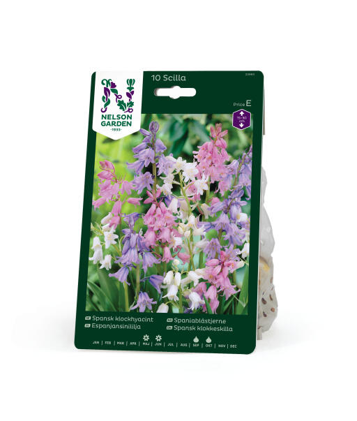 Blandningen innehåller vit-, blå- och rosablommande spansk klockhyacint. De vackra, klocklika blommorna sitter runt en upprätt stängel. Vacker planterad i grupper i glest gräs och ängsmark gärna tillsammans med olika perenner.