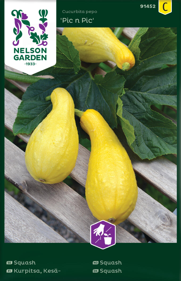 Läckert gul squash. Perfekt för den lilla trädgården eller i en större kruka. Plocka frukterna när de är 10-15 cm stora. Ger frukter hela säsongen. Trivs på varm och solig plats i mullrik, välgödslad och väldränerad jord. Vattna rikligt.