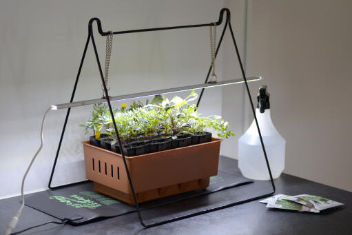 Stabil ställning till vår växtbelysning, art. 5586, 5566 och 5567. Enkel att fälla ut och vika ihop. Hopfälld tar den mycket liten plats.