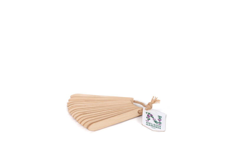 Kraftiga och hållbara sticketiketter av bambu. Försedda med hål så att de även kan hängas.