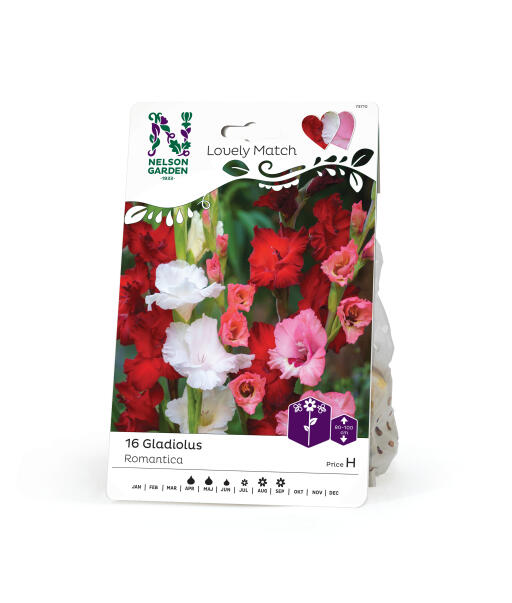 En vacker kombo av storblommiga gladioler i intensiva färger. Plantera dem i rabatt eller stor kruka och tveka inte att plocka till snitt när den nedersta blomman slår ut. En ståtligare bukett är svår att hitta.
