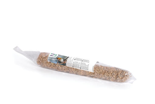 Energirik talgstång med solroskärnor, spannmål och frön. Fett- och proteinrik fågelmat som bakats runt en komposterbar pinne. Klar att hänga upp i sitt snöre. En 100 % naturprodukt.