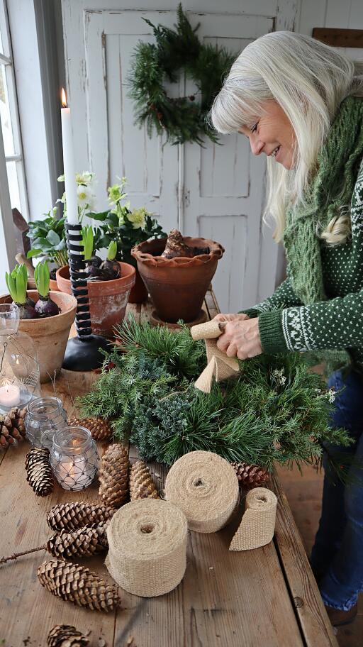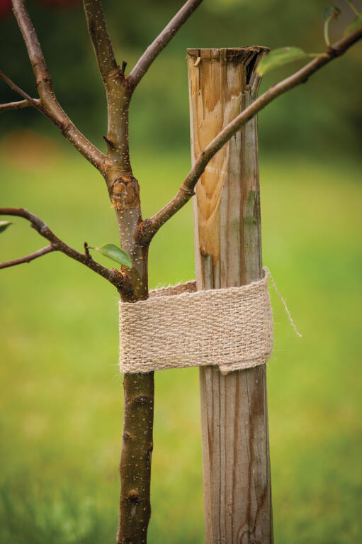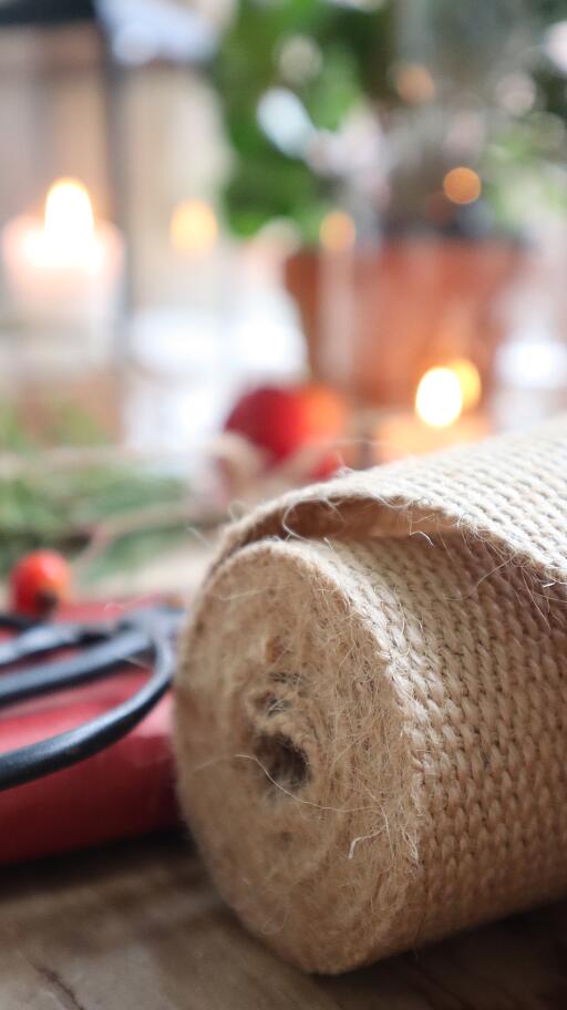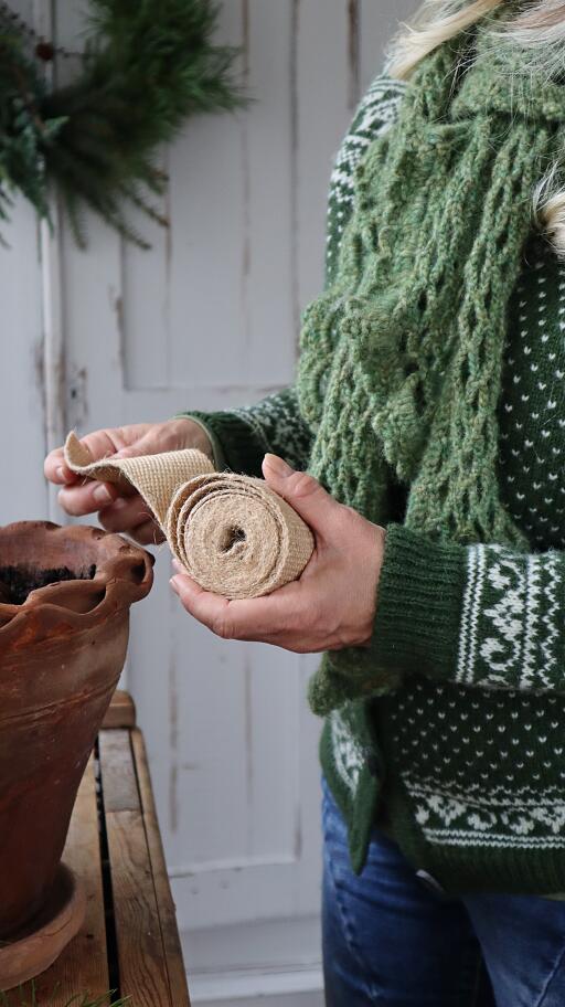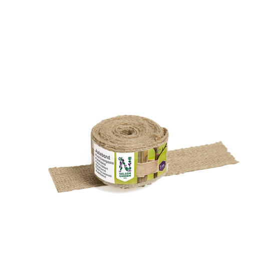 Ett brett juteband är en dekorativ och skonsam lösning för att skydda växterna. Knyt det gärna tillsammans med ull kring växterna för bästa möjliga skydd. Med en bredd på 6 cm blir uppbindningen stabil och pålitlig.