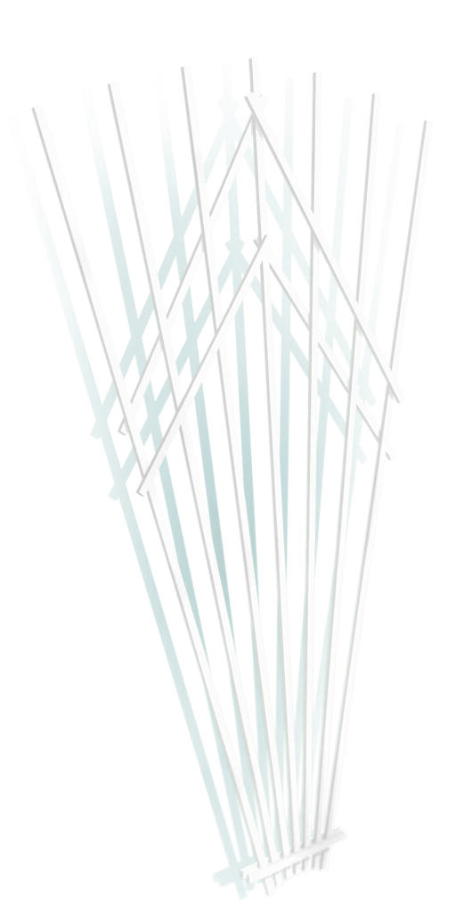 Spaljé i vitmålat trä. Solfjäderformad. Höjd 2 m.