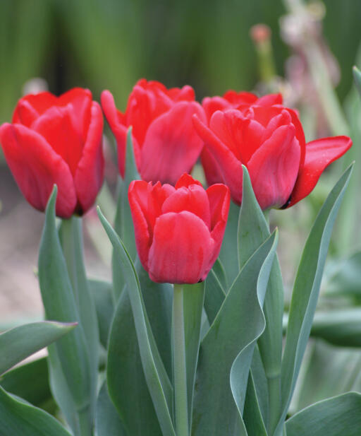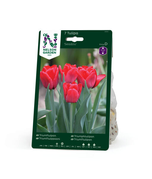Blombladen hos denna tulpan flammar vackart i kardinalrött. Triumftulpanen är en riktig klassiker och blommar mitt i tulpansäsongen. Blommorna är relativt stora och brukar stå länge. Mycket bra som snittblommor.