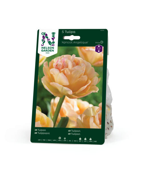 Änglalikt ljuv och i mjuka färgtoner som nästan inte låter sig beskrivas. En tulpan där aprikos, ljust rosa, mandarin och gräddvitt harmoniskt samspelar på ett överflöd av kronblad. Ett finstämt konstverk för rabatten.