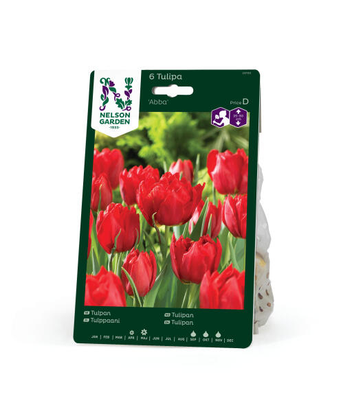 Glödande röd på utsidan, med fina fjäderlika gula strimmor upp från bottnen. Denna tidiga dubbelblommande skönhet är begåvad med doft och möjligheten att plantera i kruka såväl som i rabatten - och är dessutom bra till snitt!