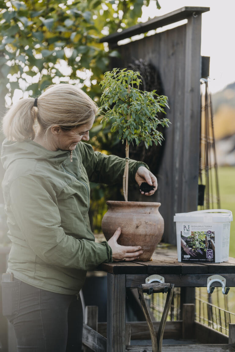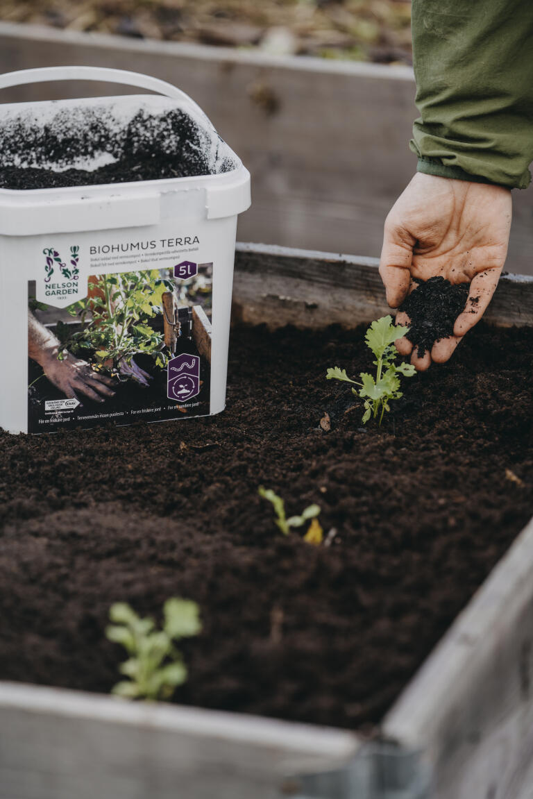 Biohumus Terra är mild mot växtrötter, och kan användas till alla växter under hela året. Vid plantering av buskar och träd, blanda en hink Biohumus Terra med befintlig jord. Vid plantering i större krukor, blanda en hink Biohumus Terra med 50 liter jord. Vid jordförbättring i rabatter och pallkragar, mylla ner en hink Biohumus Terra per 2 kvm.