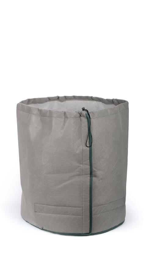 Isolerande vinterskydd för växter i kruka på t.ex. balkong. Med kardborrband och dragsko. Tre skyddande lager av polypropen (PP) 100 g/m² resp. 30 g/m² samt polyeten (PE). Botten av 4 cm frigolit. Höjd 50 cm, Ø45 cm.