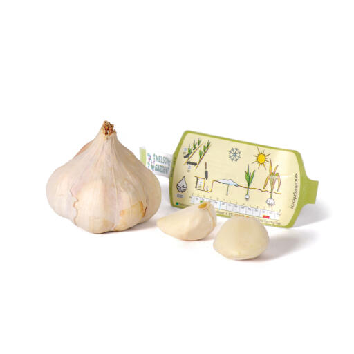 Denna ekologiska vitlök från sydöstra Frankrike är en tidig, köldtålig och pålitlig sort som får 8-14 stora klyftor med fyllig smak. Skörda den färsk i maj och ät som purjolök eller slutskörda den i augusti och torka i fläta.